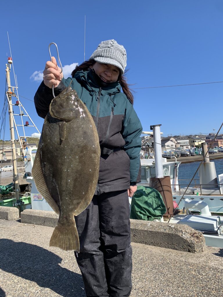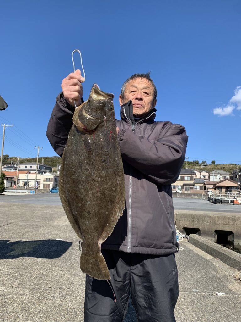 1月 25日(日) 釣果情報 2026.01.25 釣り物 ヒラメ 釣果 0.5~3.0kg 1~3尾 釣り場所 外川沖 水深 10m 天候、晴れ、西北西の風、7~9m、水温、12.0℃、水色、やや不良、潮流、真潮。 型は良かったが、アタリ少なく苦戦…………!!!!!!。 石川様 伊黒様